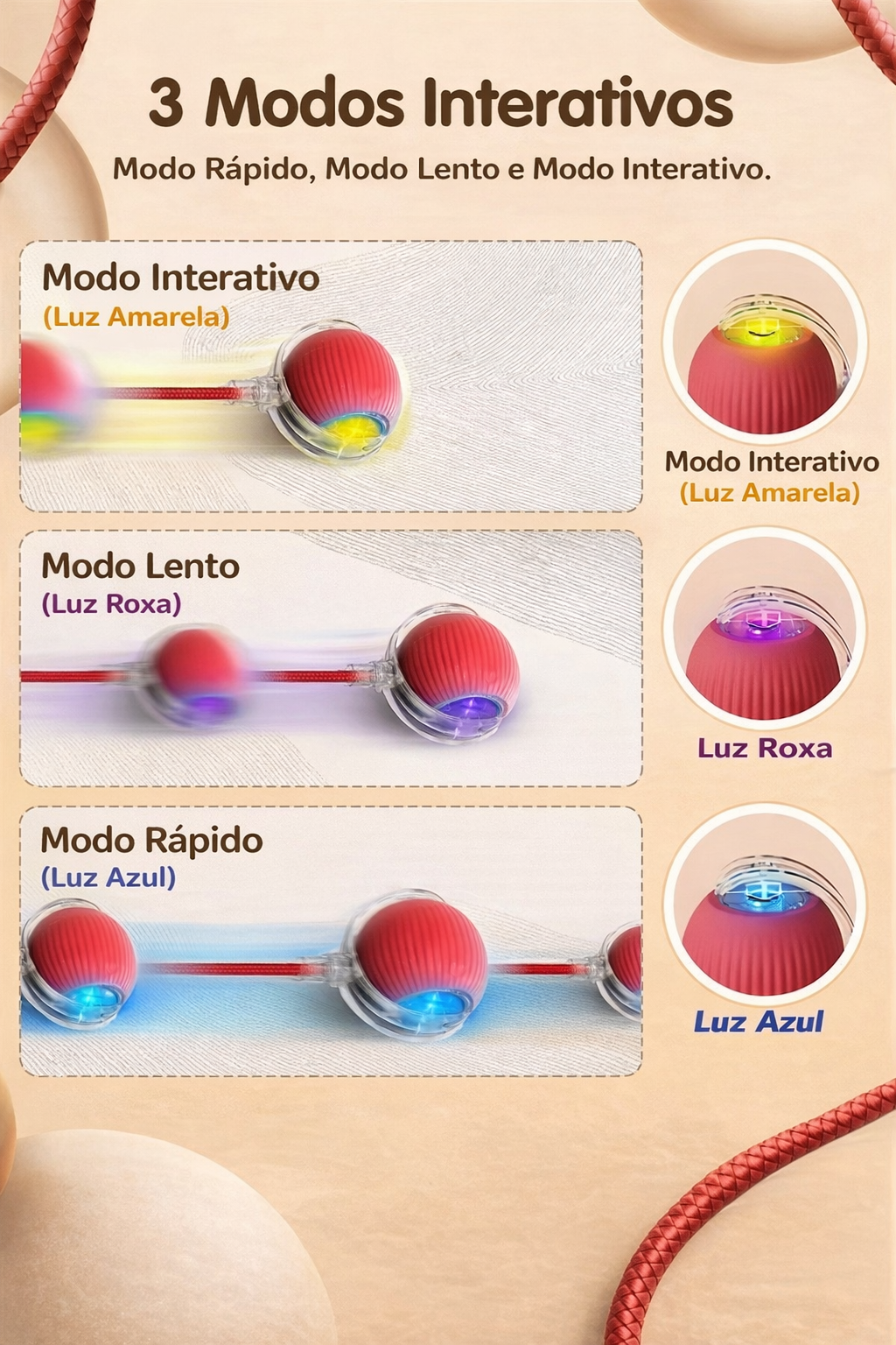 ✅ Ajuda a reduzir o estresse e o tédio – Perfeita para pets que ficam sozinhos por muito tempo. ✅ Luz LED vibrante – Chama a atenção do pet, deixando a brincadeira ainda mais divertida. ✅ Movimento 360° – A bolinha se move sozinha, mantendo o interesse do pet e estimulando seu instinto de brincadeira. ✅ Recarregável via USB – Sem a preocupação com pilhas! Carregue facilmente e continue a diversão.